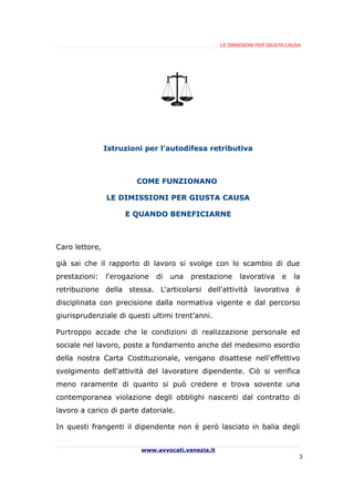 Lettera di Dimissioni per Giusta Causa: Come Presentarla? Come presentare una lettera di dimissioni per giusta causa Perché abbia efficacia legale, nella lettera di dimissioni per giusta causa il dipendente deve indicare in modo esplicito la volontà di cessare il rapporto lavorativo e di non rispettare il periodo di preavviso, nonché l'elenco dei fatti che hanno determinato la giusta causa di dimissioni.