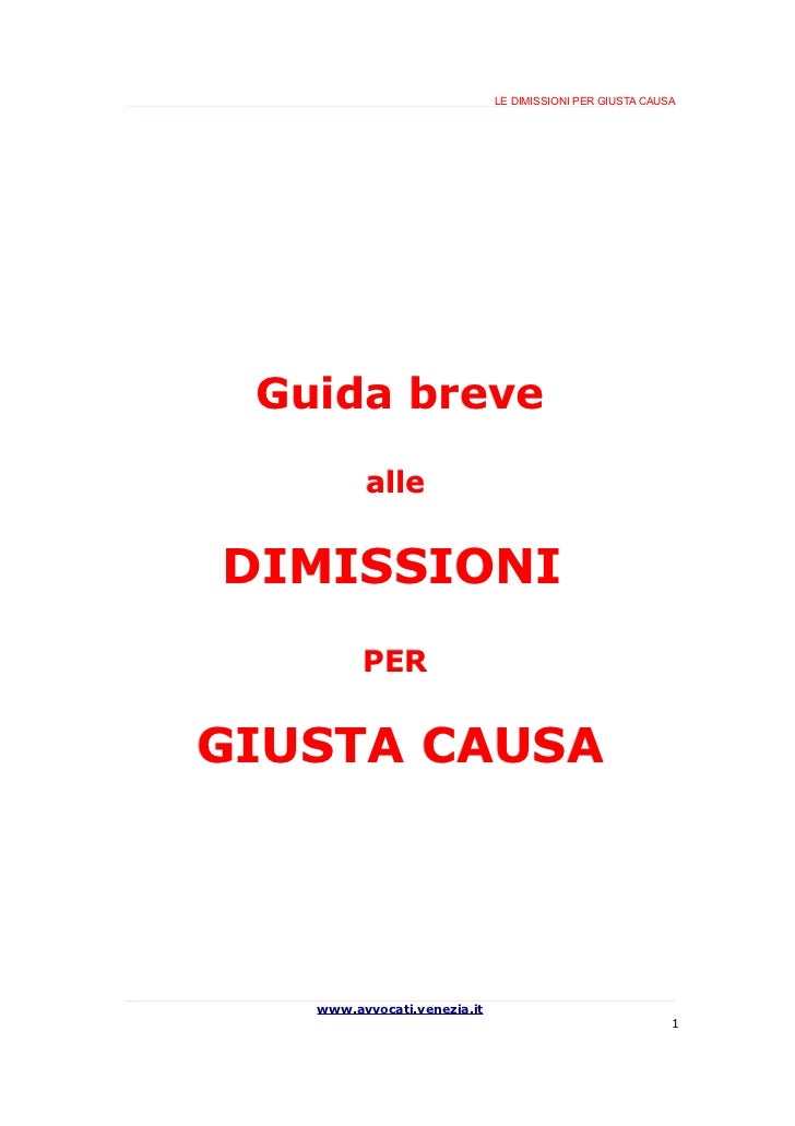 Dimissioni per giusta causa. Volontà del lavoratore dipendente di ... La Corte Costituzionale, con una sentenza del 2002, ha stabilito che le dimissioni per giusta causa non sono riconducibili alla libera scelta del lavoratore, in quanto indotte da comportamenti altrui idonei ad integrare la condizione di improseguibilità del rapporto di lavoro. Comportano, quindi, uno stato di disoccupazione involontaria. Lettera di Dimissioni - Modello - Modulo Comunico altresì la mia indisponibilità a prestare attività durante il periodo di preavviso previsto dalle norme contrattuali. Ai sensi dell'art. 2119 c.c. ritengo che i seguenti fatti che si va a descrivere costituiscano una giusta causa di dimissioni e non consentano la normale prosecuzione del rapporto di lavoro: ________
