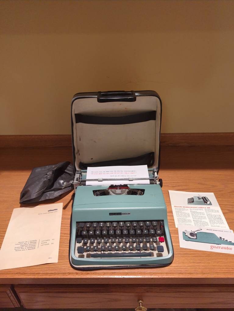 Olivetti Letter 32 Typewriter | Etsy Olivetti letter 32 typewriter Kaitlin Gotcher Mar 9, 2022 Exactly what I asked for. Typewriter is is good condition and works well. Unfortunately shipping took 3 weeks to Ireland but it was during Christmas period so this was to be expected. Seller was extremely helpful and very quick with responding with updates. Purchased item:
